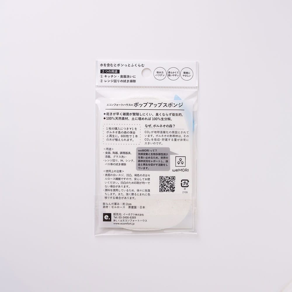ecomfortHouse's pop-up sponges are made of 100% cellulose, a fibrous ingredient from wood scraps.