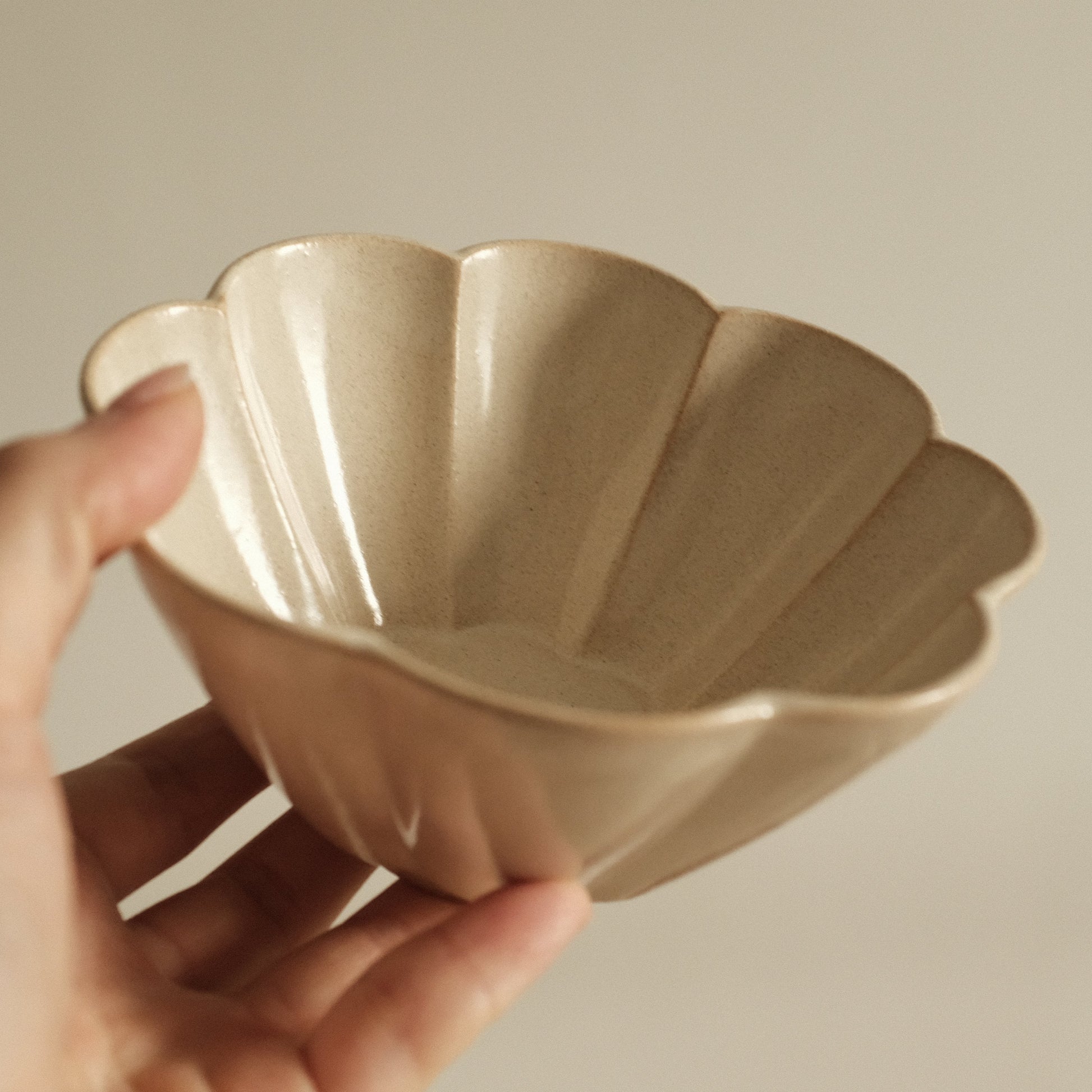 This bowl is shaped in the graceful form of a blooming flower, adding a touch of natural beauty and artistic flair to your table. The unique shape makes it a standout piece in any setting. This bowl features a warm sand beige glaze, a neutral and earthy tone that evokes the natural beauty of sandy landscapes. The glaze creates a sense of calm and understated elegance.