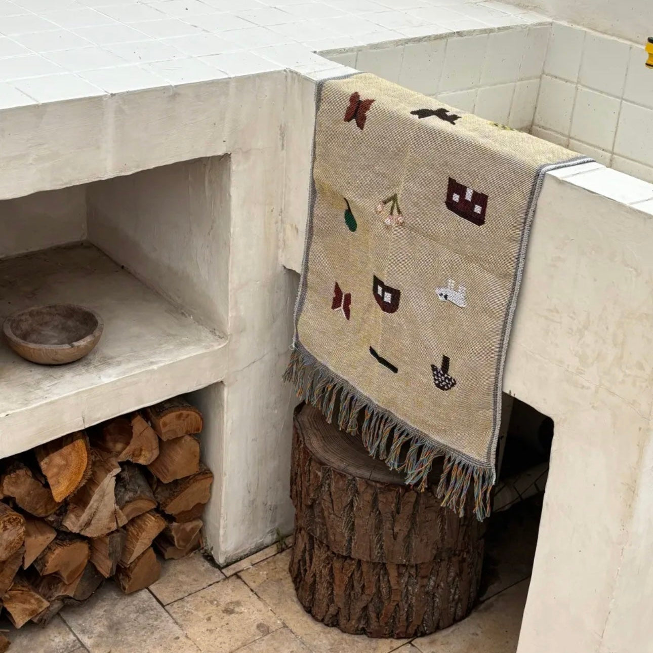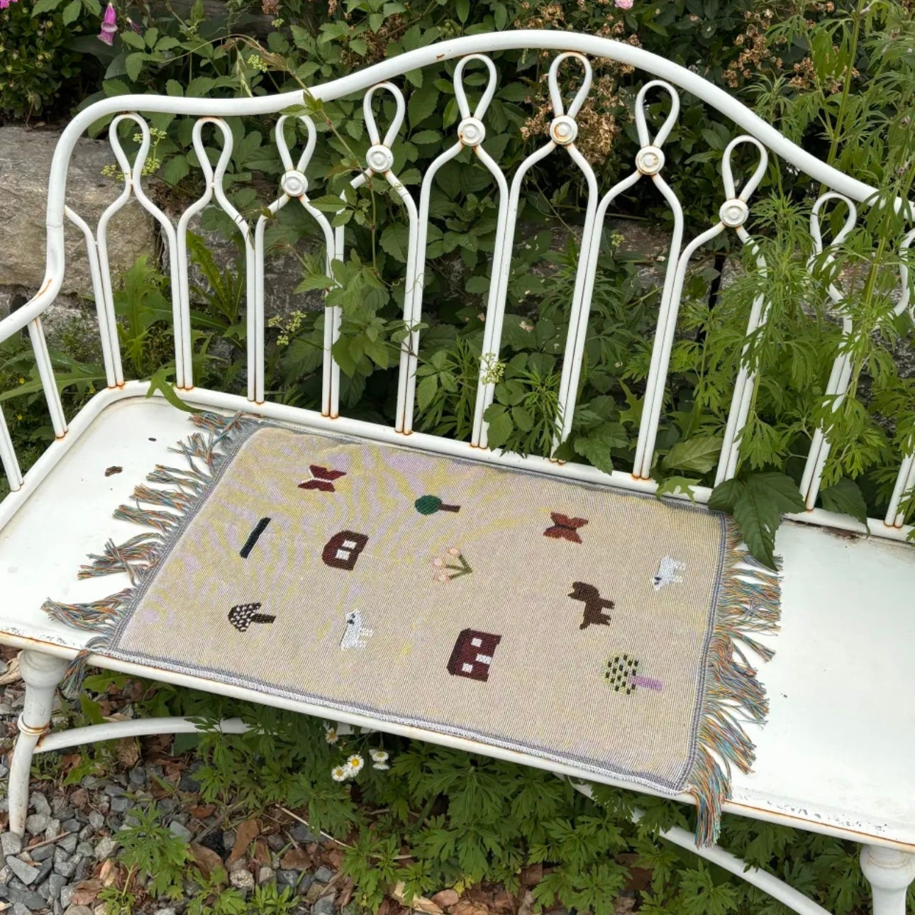 Bask in the golden calm of the countryside with LUCIENNE, a whimsical knitted tapestry blanket that captures the quiet poetry of rural life.