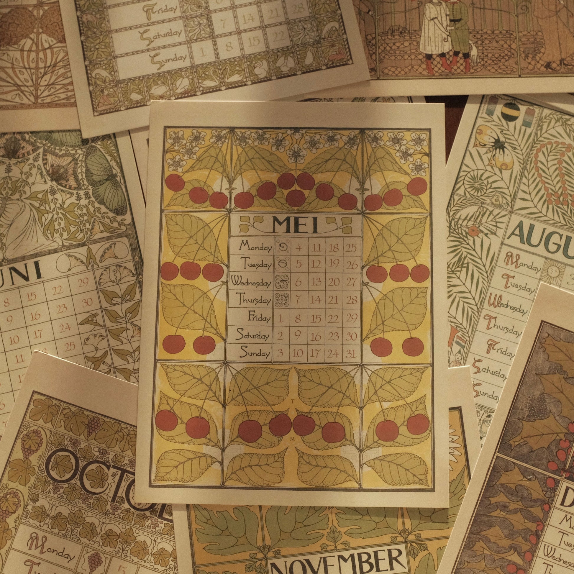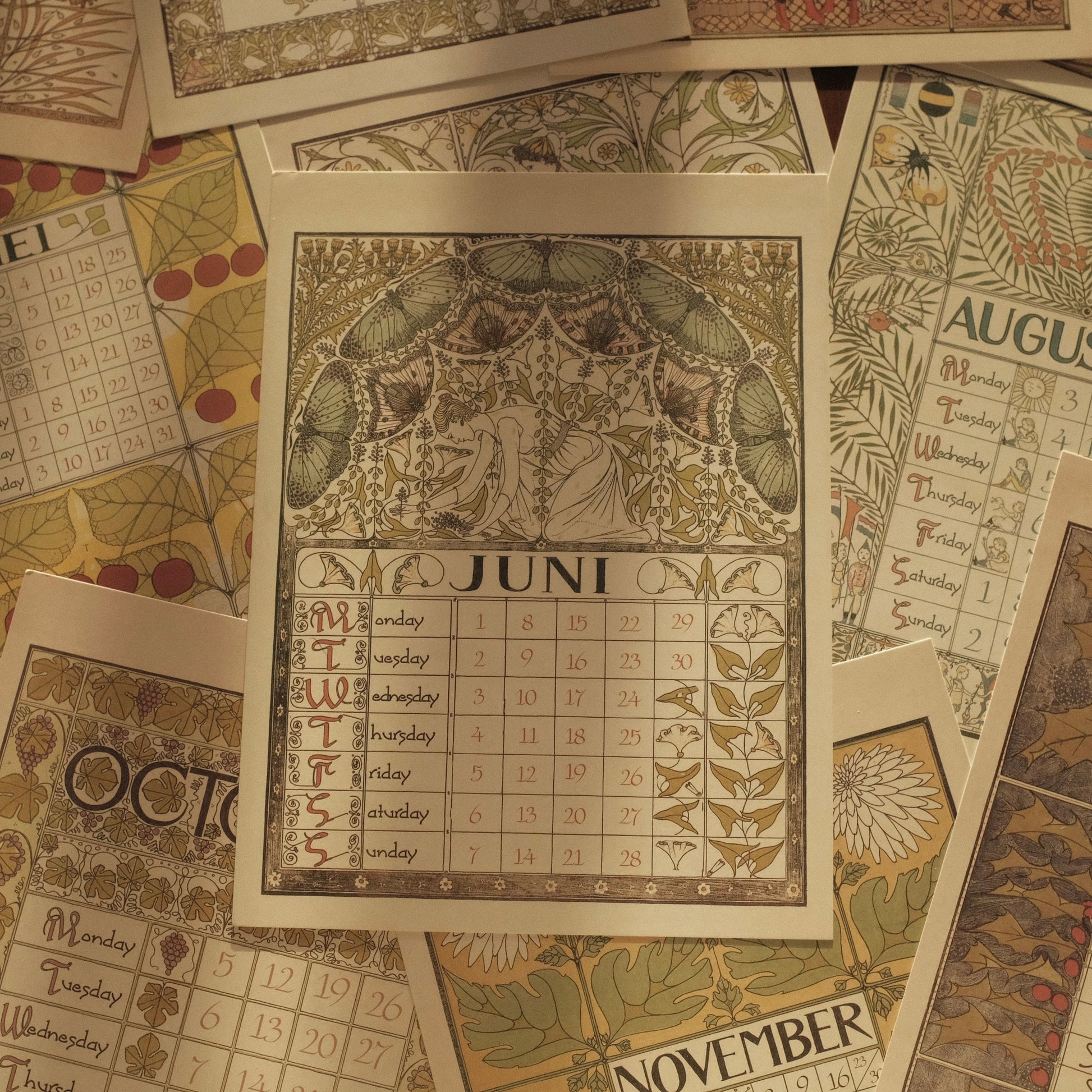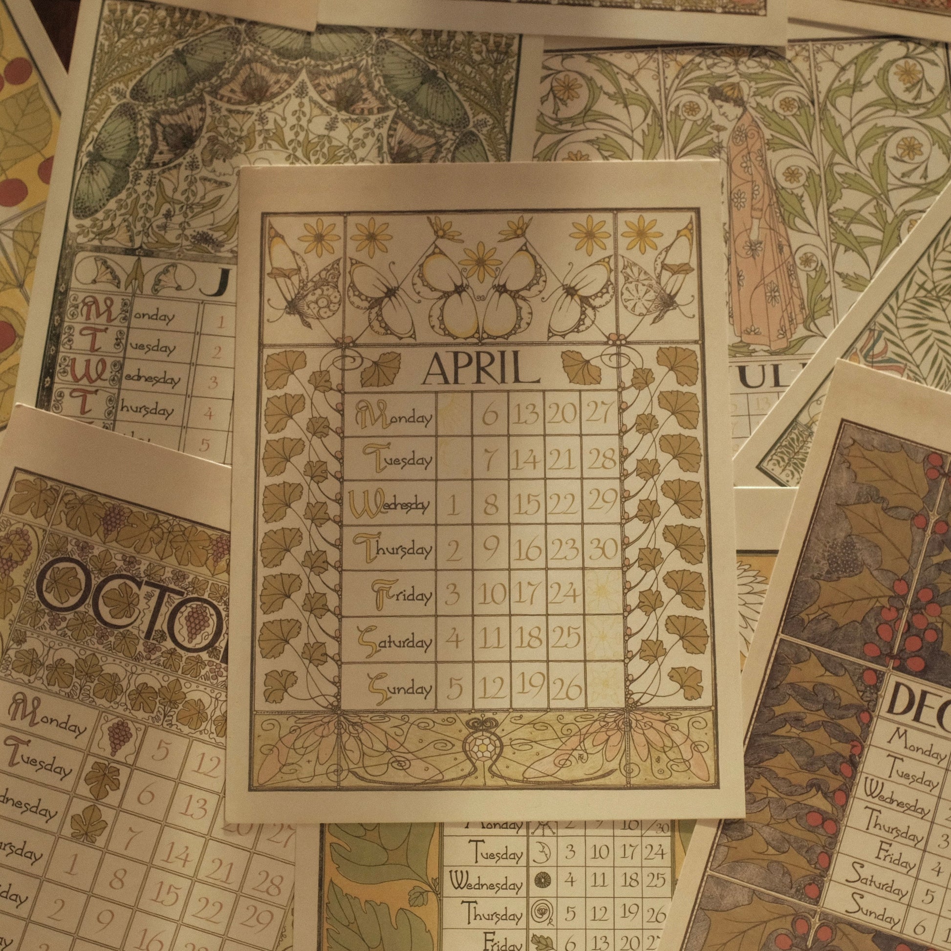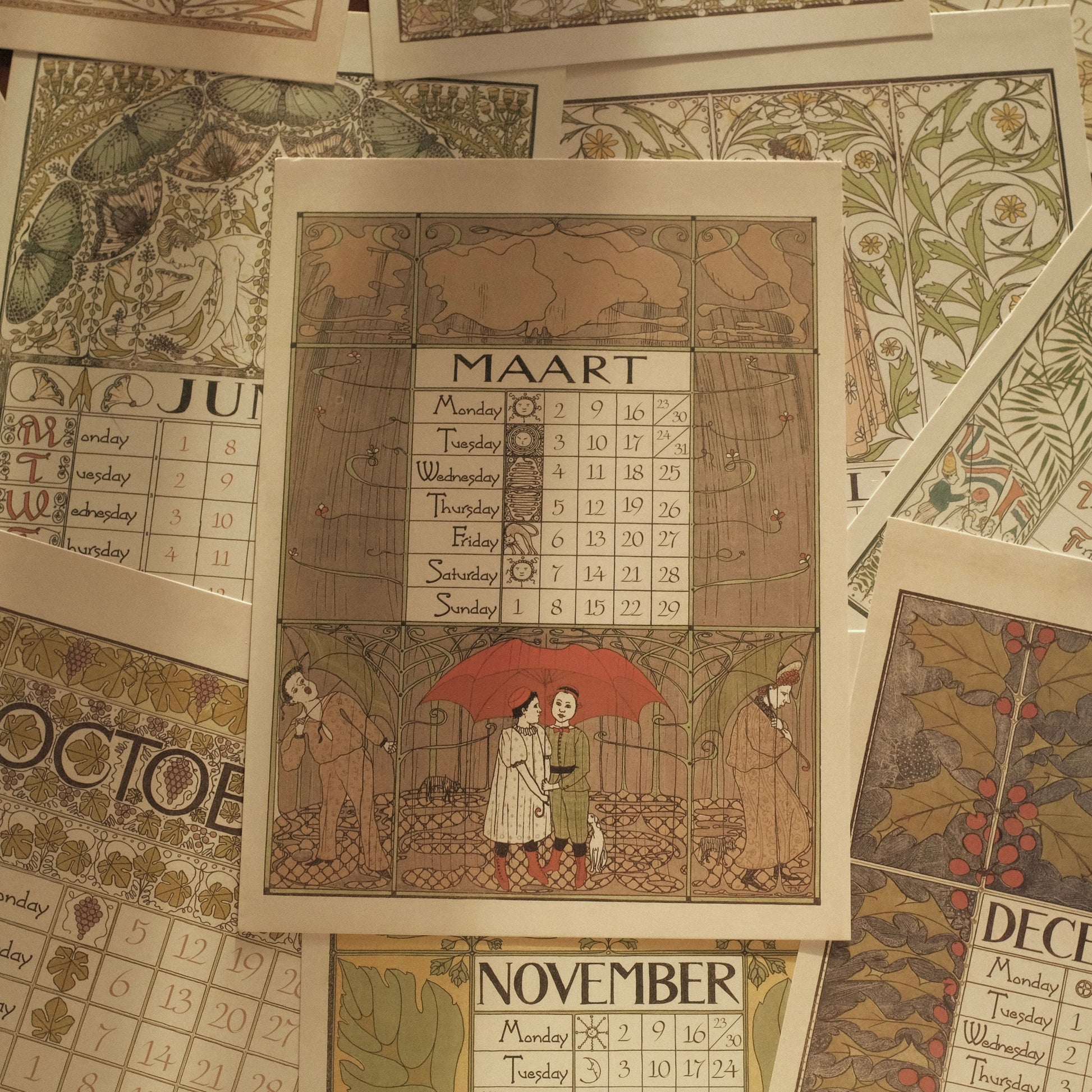 Each month features delicate illustrations and intricate detailing, reminiscent of early 20th-century European artistry. Printed on high-quality art card, the calendar exudes a luxurious tactile feel and is perfect for display on walls, doors, or easels. Its retro aesthetic complements modern interiors while evoking the refined charm of a bygone era.