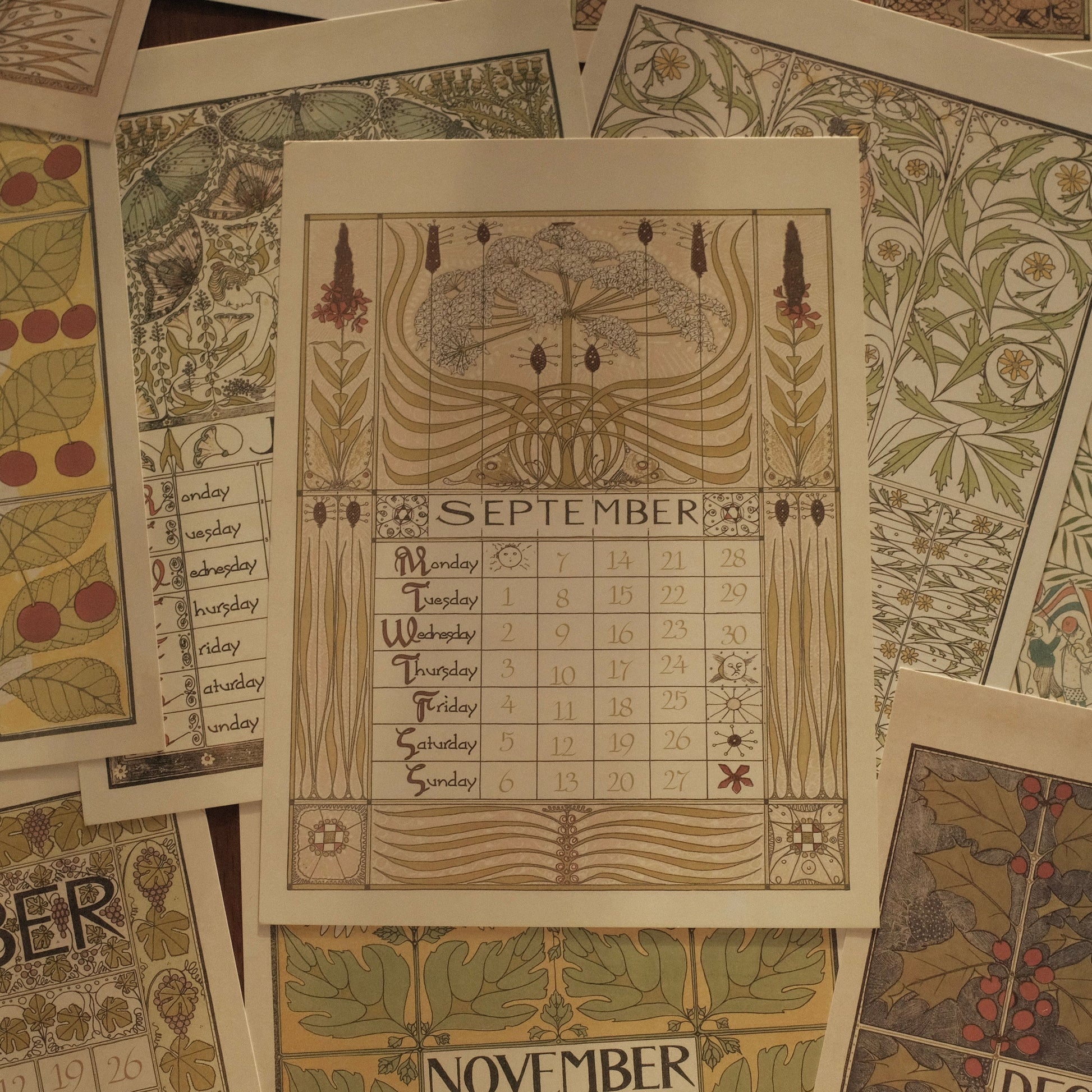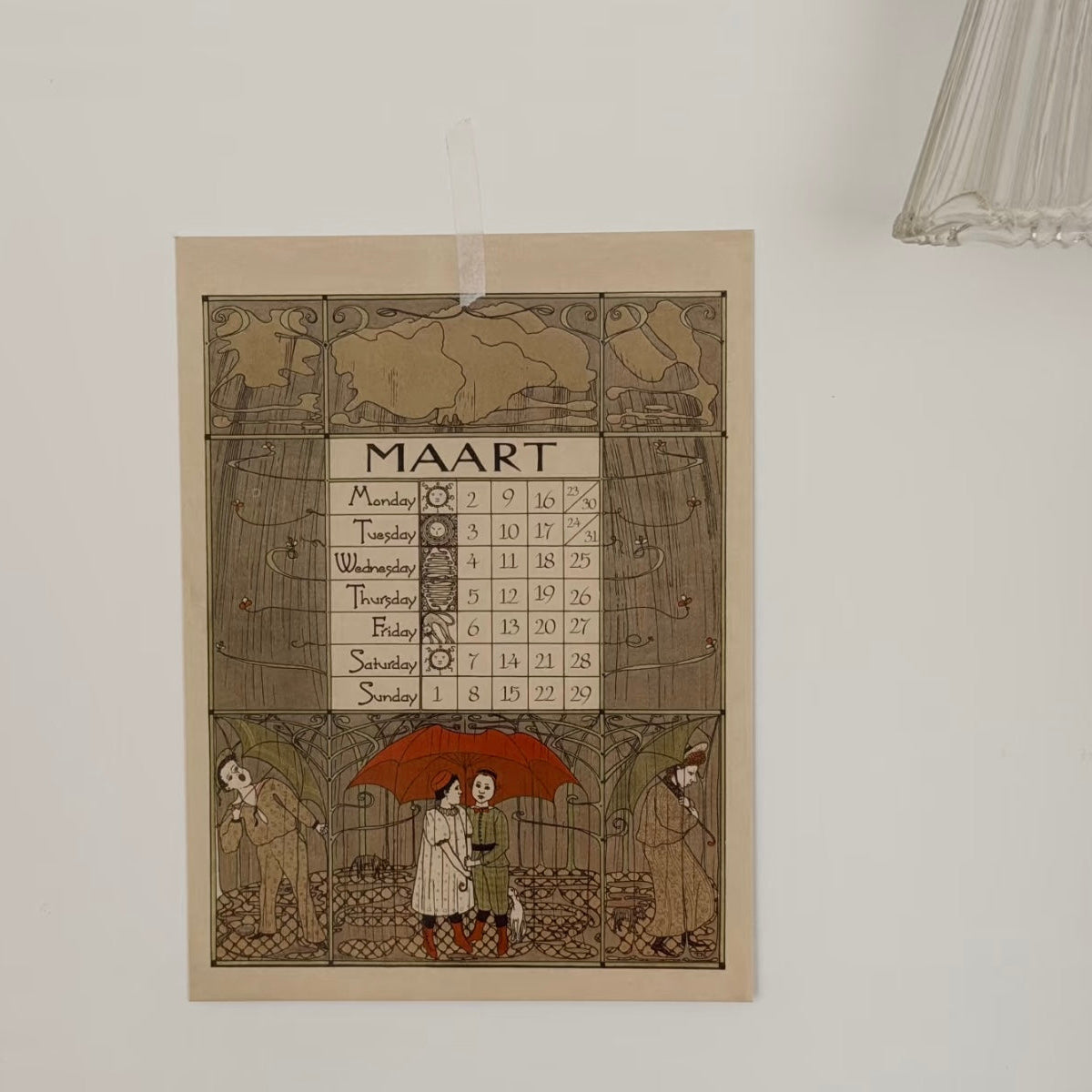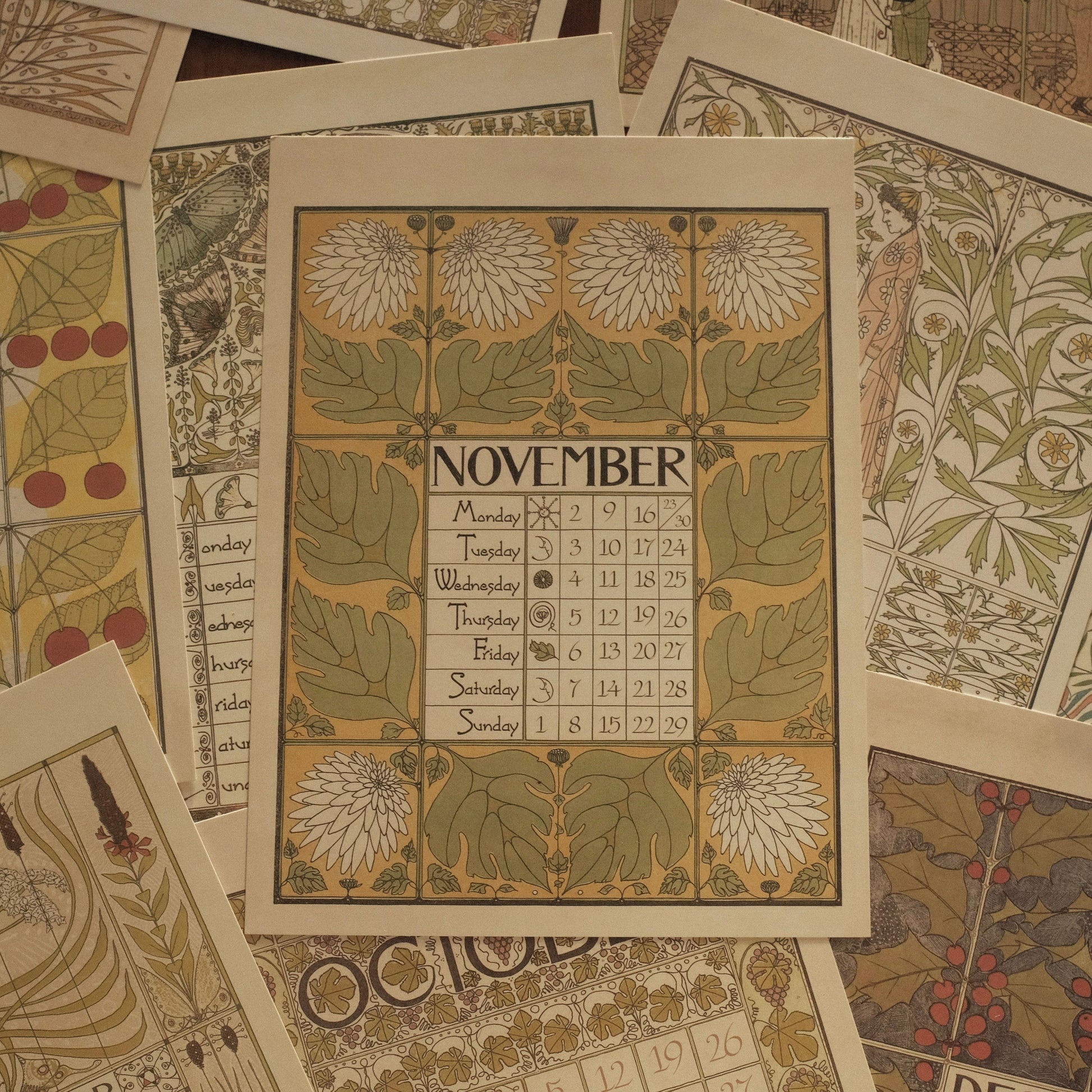Each month features delicate illustrations and intricate detailing, reminiscent of early 20th-century European artistry. Printed on high-quality art card, the calendar exudes a luxurious tactile feel and is perfect for display on walls, doors, or easels. Its retro aesthetic complements modern interiors while evoking the refined charm of a bygone era.