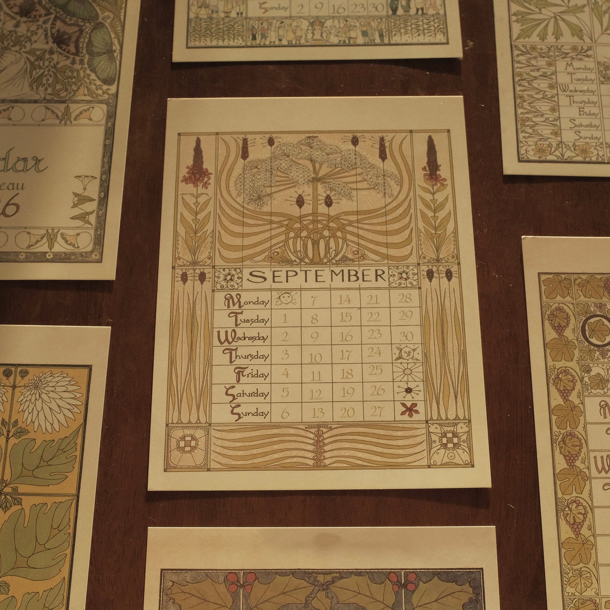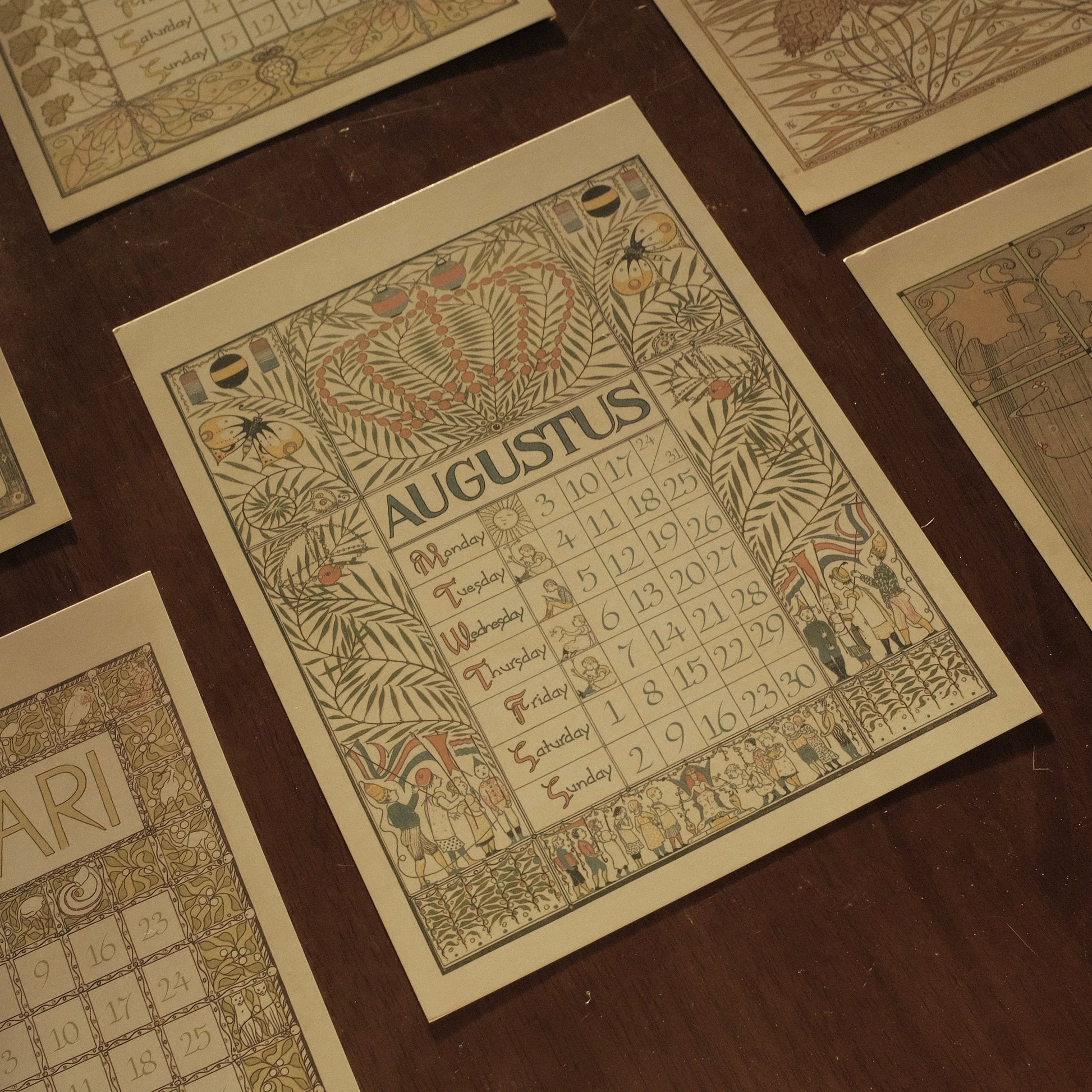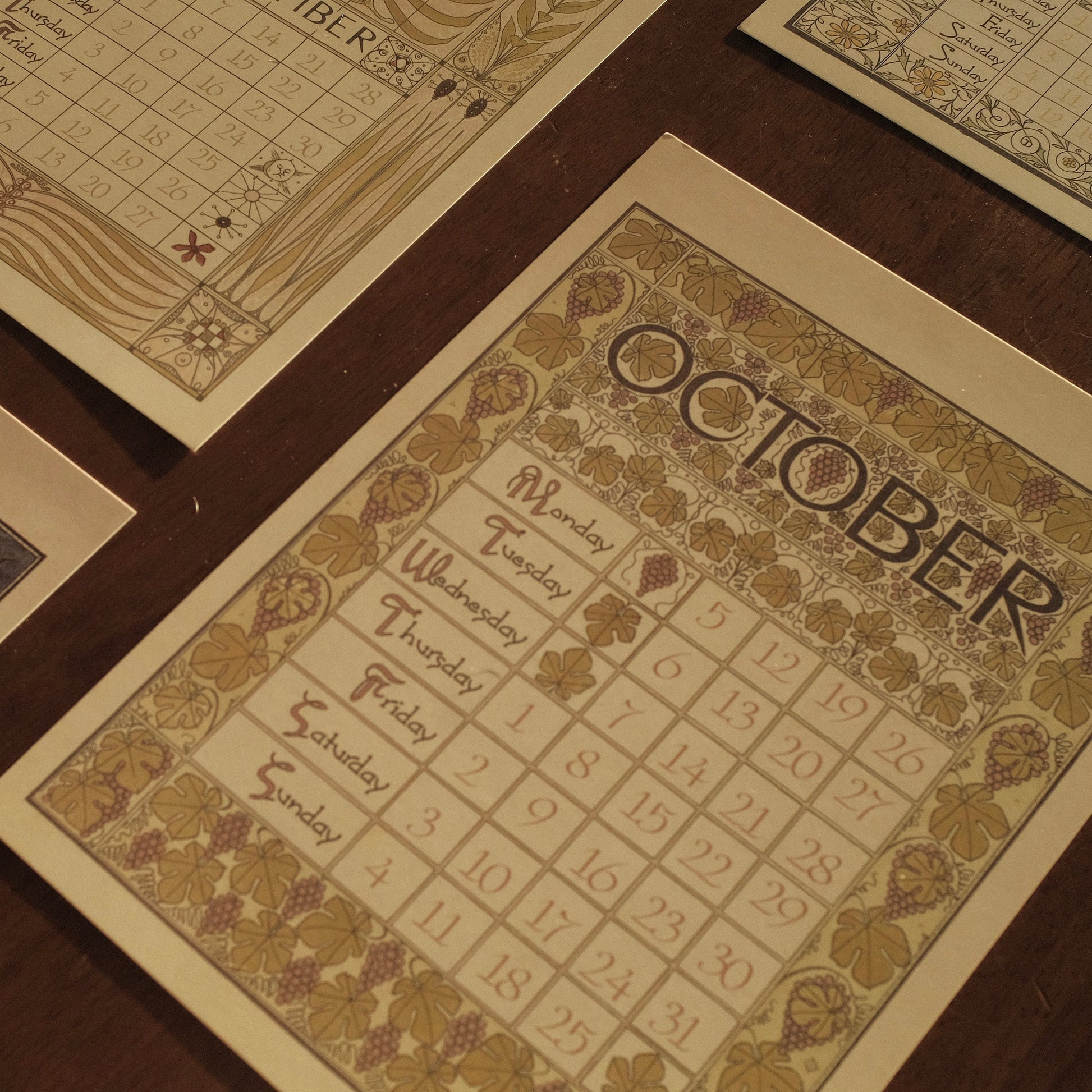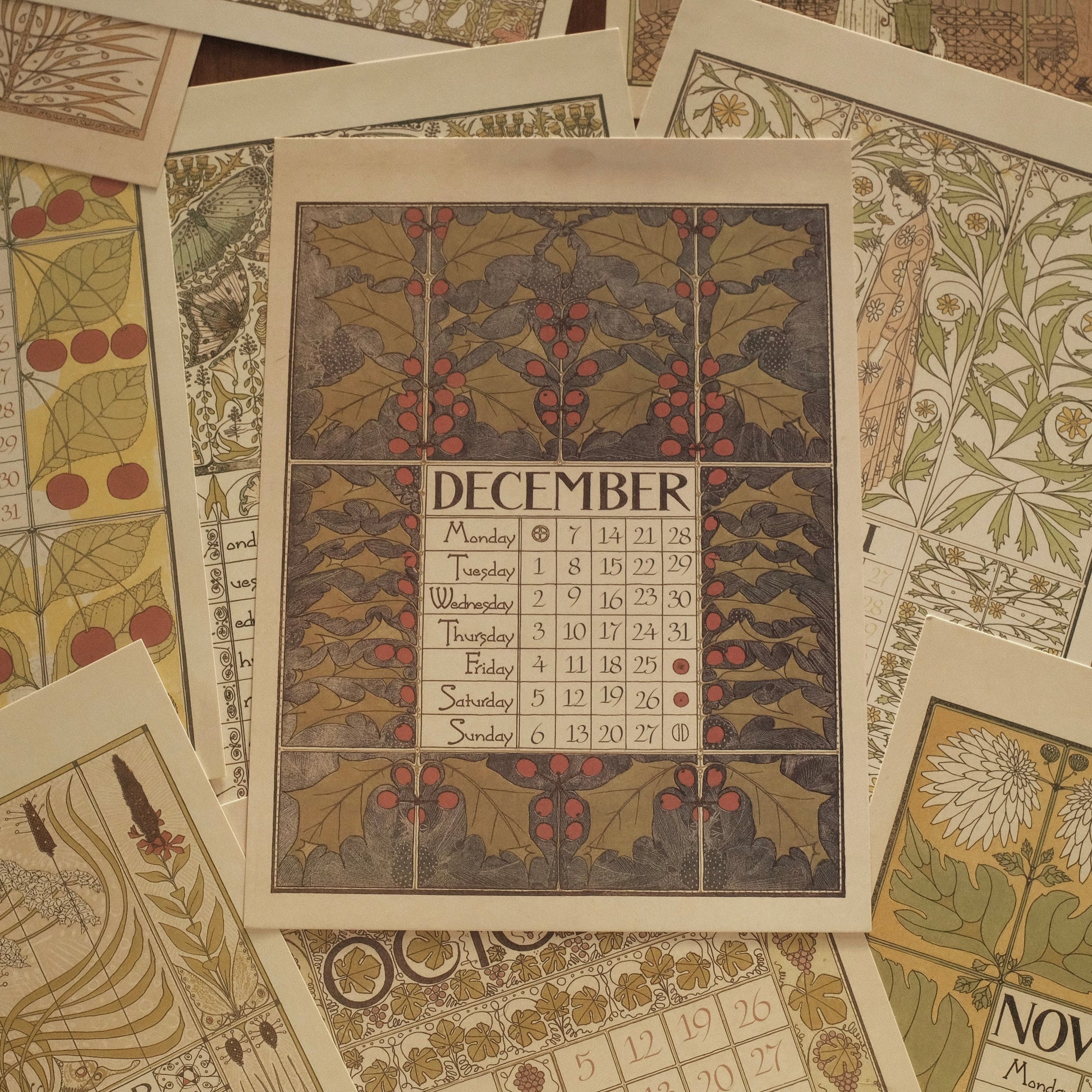 Each month features delicate illustrations and intricate detailing, reminiscent of early 20th-century European artistry. Printed on high-quality art card, the calendar exudes a luxurious tactile feel and is perfect for display on walls, doors, or easels. Its retro aesthetic complements modern interiors while evoking the refined charm of a bygone era.