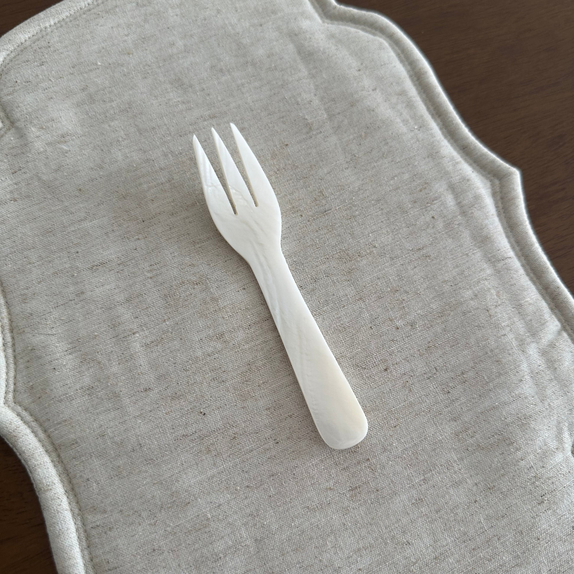 PEARLE Off White Mother of Pearl Spoon Fork Knife 12cm Dessert Coffee Cake Cutlery Flatware