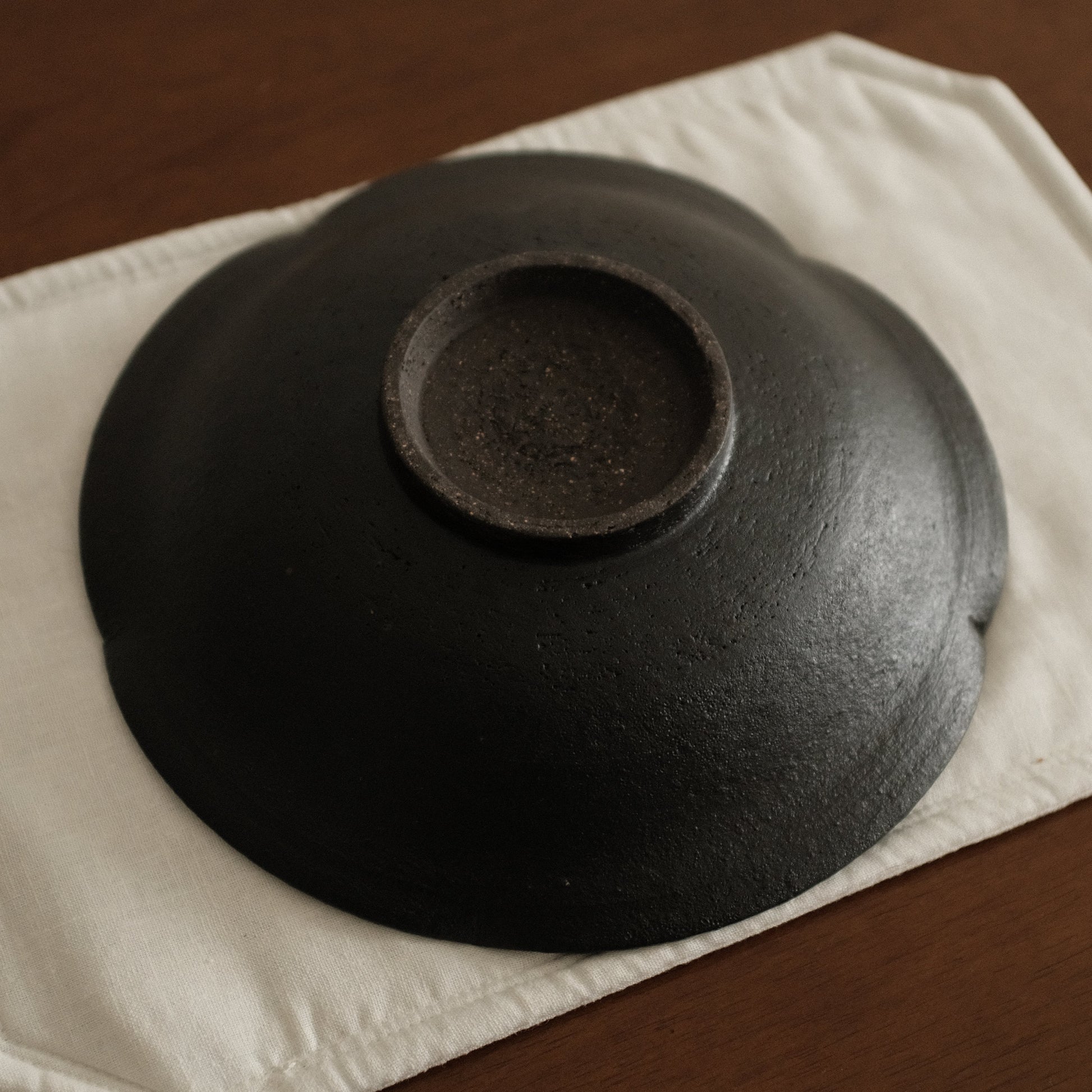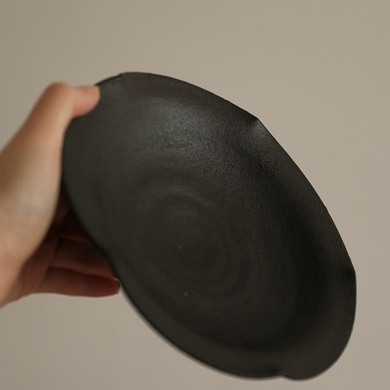 Bold and refined, this handmade floral-rim plate is crafted in an elegant silhouette that balances artistry with function. The ebony black glaze creates a deep, lustrous surface, subtly enhanced by the natural nuances of the kiln — each piece carrying its own quiet variations, never exactly alike.