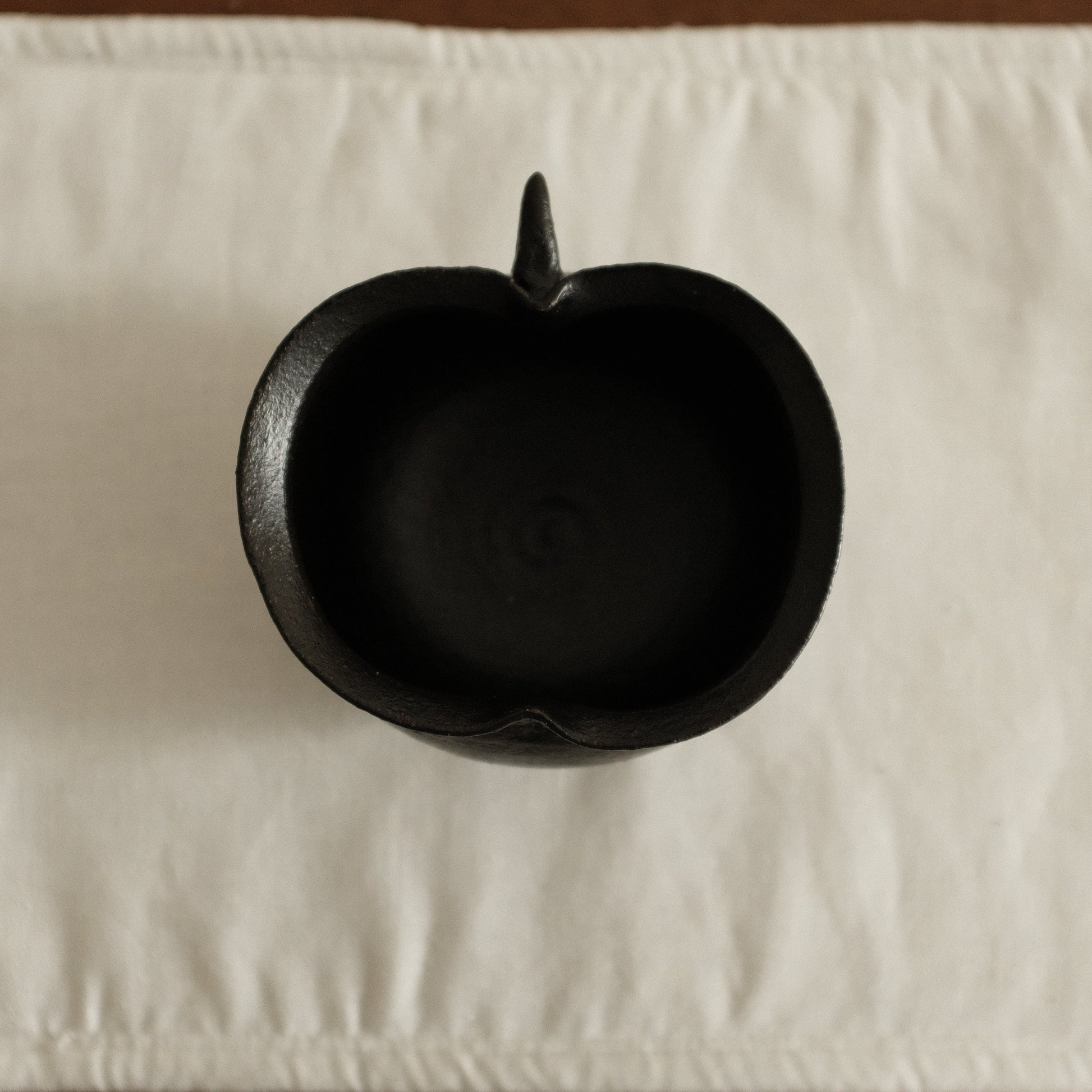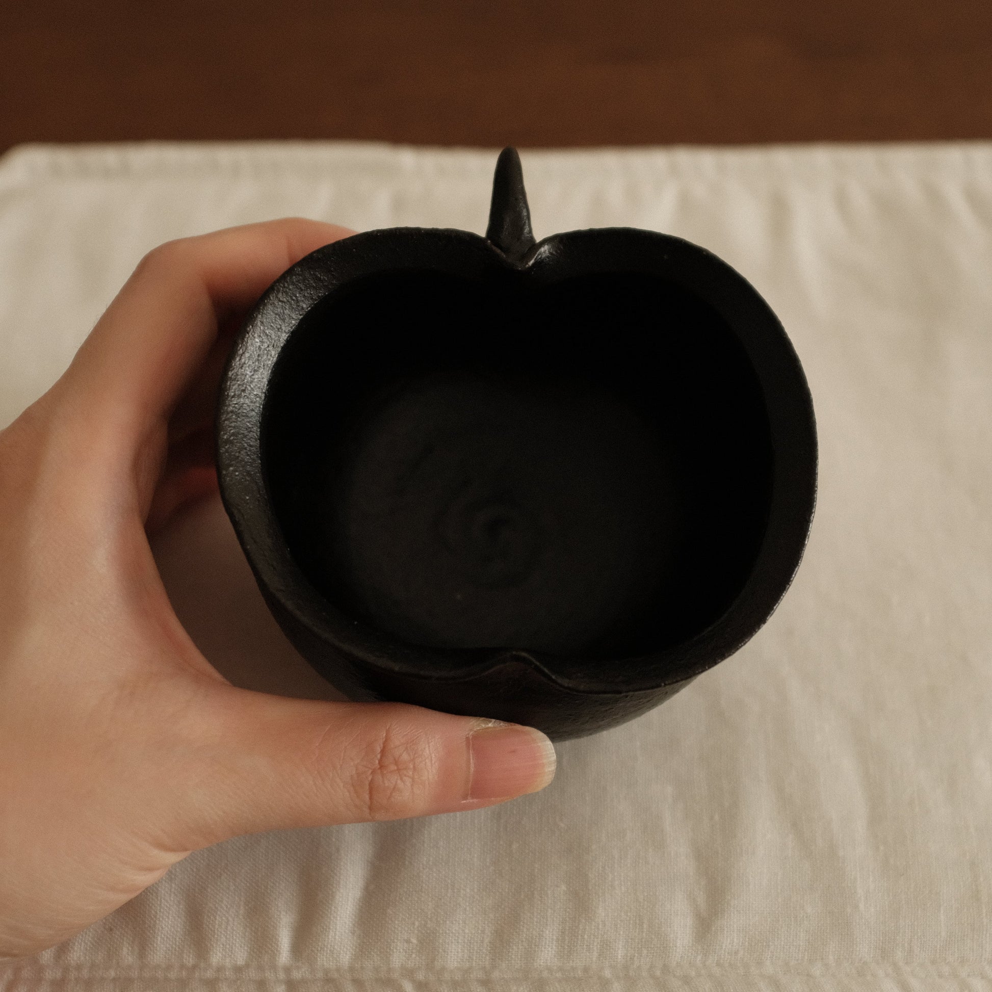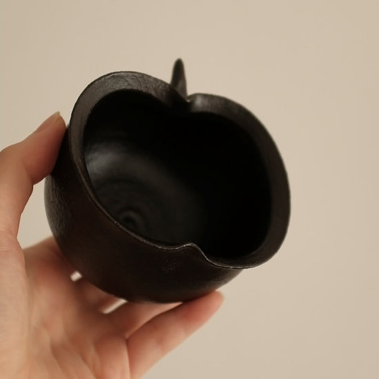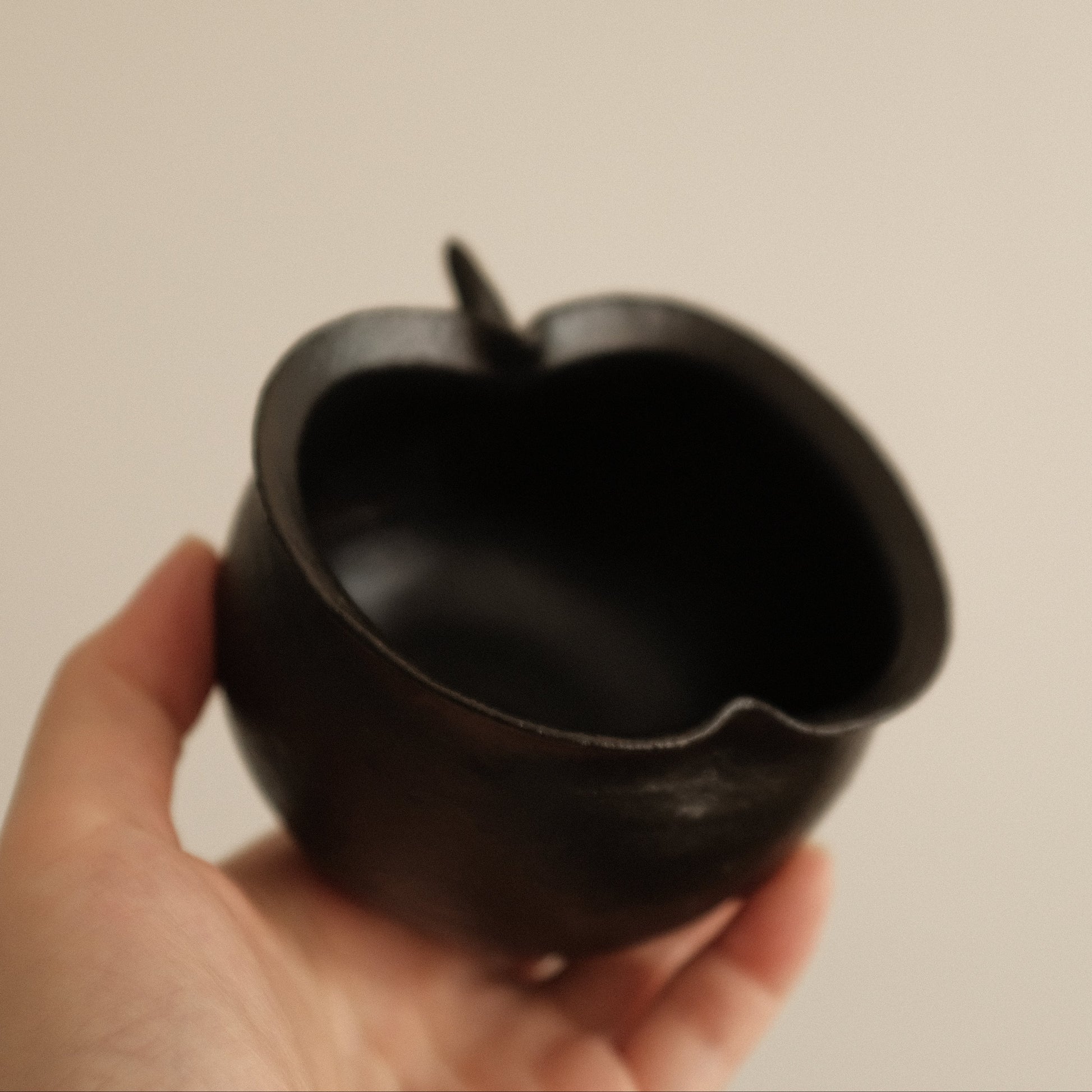 Yuli Handmade Ebony Black Apple Cup Bowl Black Glaze Underglaze Stoneware