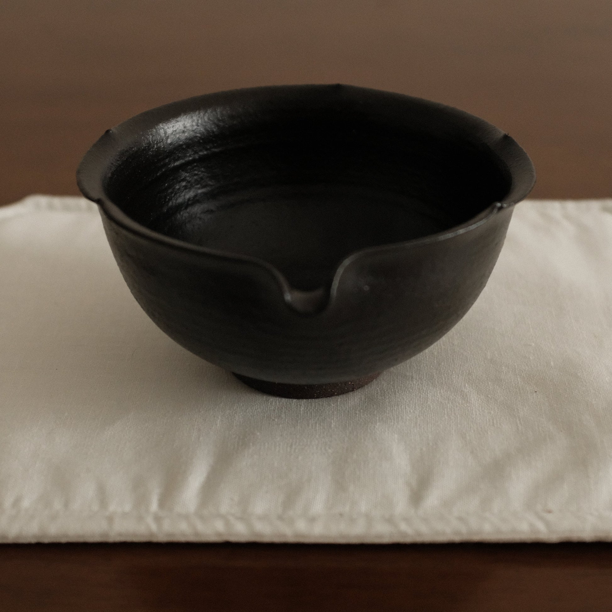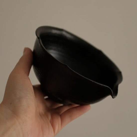 Graceful yet functional, this handmade katakuchi chawan (spouted matcha bowl) is designed for both traditional tea rituals and contemporary use. Its distinctive floral rim lends a gentle elegance, softening the bowl’s silhouette while celebrating the organic beauty of hand-formed clay. The subtle spout makes it versatile — ideal for whisking matcha or for pouring with ease.
