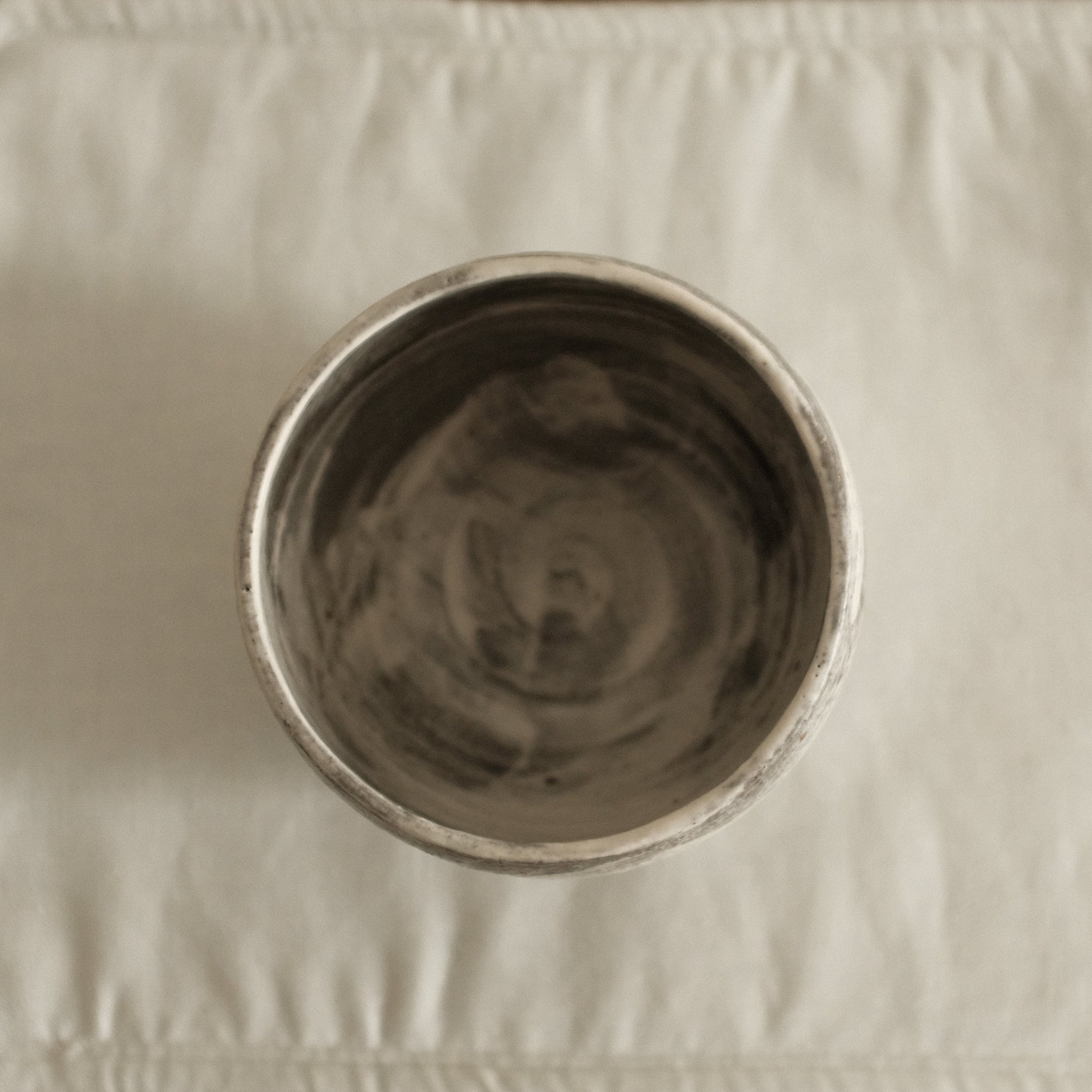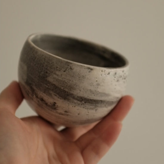 Yuli Handmade Speckled Grey White Round Egg Cup Powdered Glaze Underglaze Stoneware