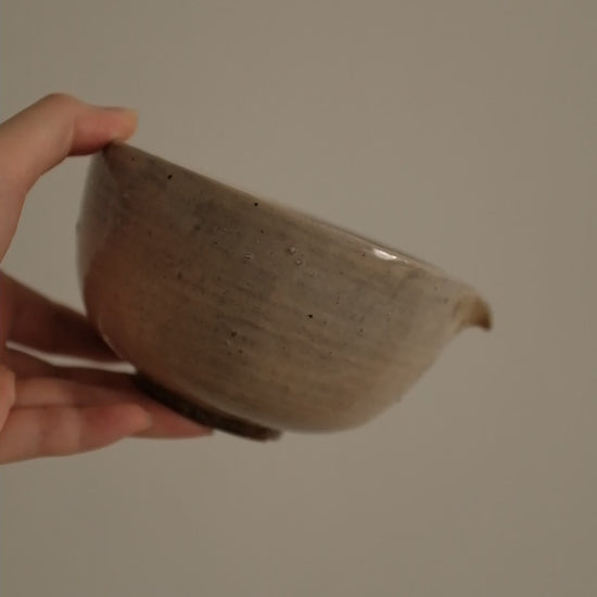 Infused with quiet elegance, the Yuli Handmade Pink Grey Katakuchi Chawan Matcha Bowl is a one-of-a-kind piece that celebrates the beauty of natural imperfection. Crafted from high-quality stoneware and wood-fired to bring out its organic character, each bowl features a soft blush-pink and muted grey palette delicately accented with a glaze of deer-spotted pattern—a unique speckling effect reminiscent of soft woodland patterns.