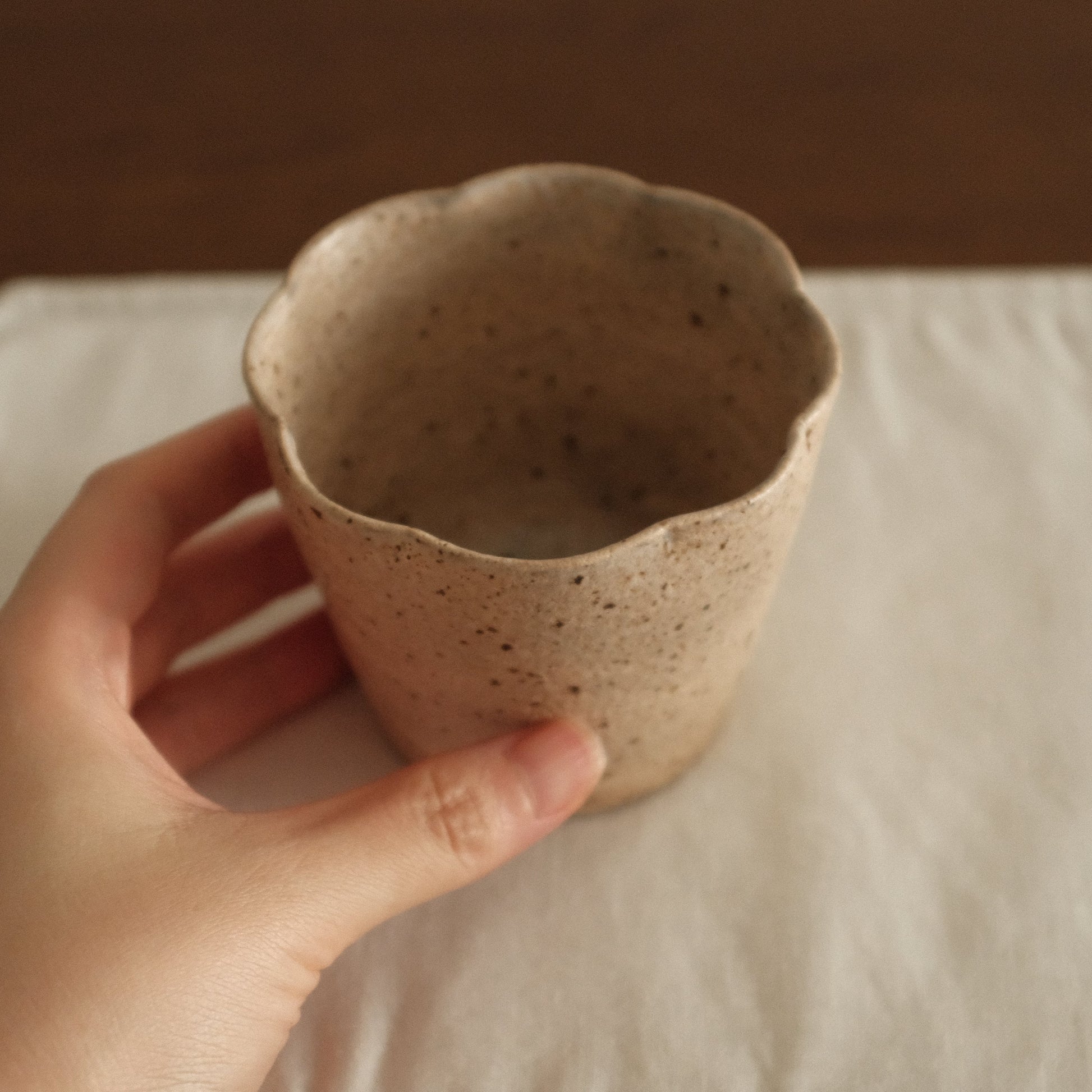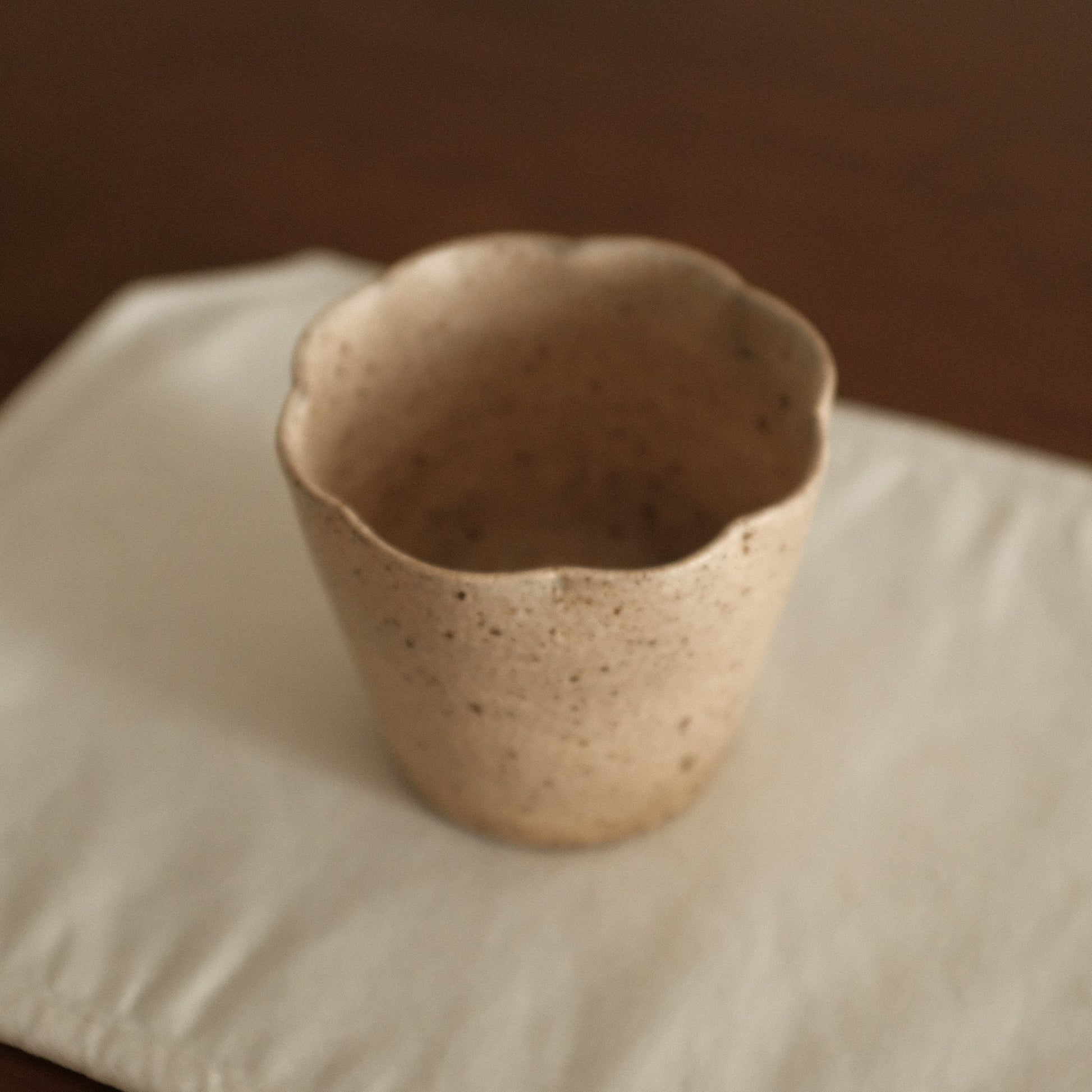 Elegant in its simplicity, this handmade straight cup is crowned with a delicate floral rim — a subtle detail that softens its clean lines and adds a whisper of grace.