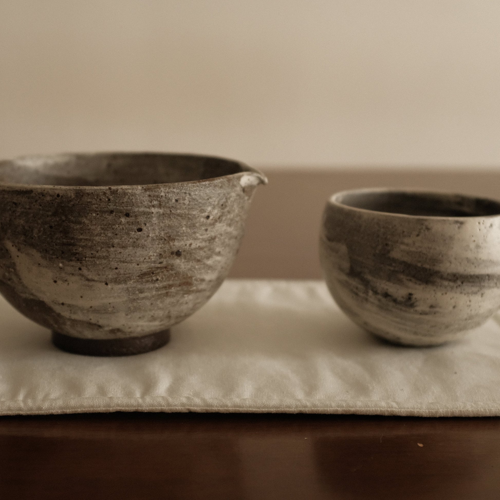 A harmonious blend of tradition and artistry, this handmade katakuchi chawan (spouted matcha bowl) is crafted with both form and function in mind. Its distinctive spout adds versatility — perfect for whisking matcha with ease, or for gracefully pouring tea, sauces, or dressings.